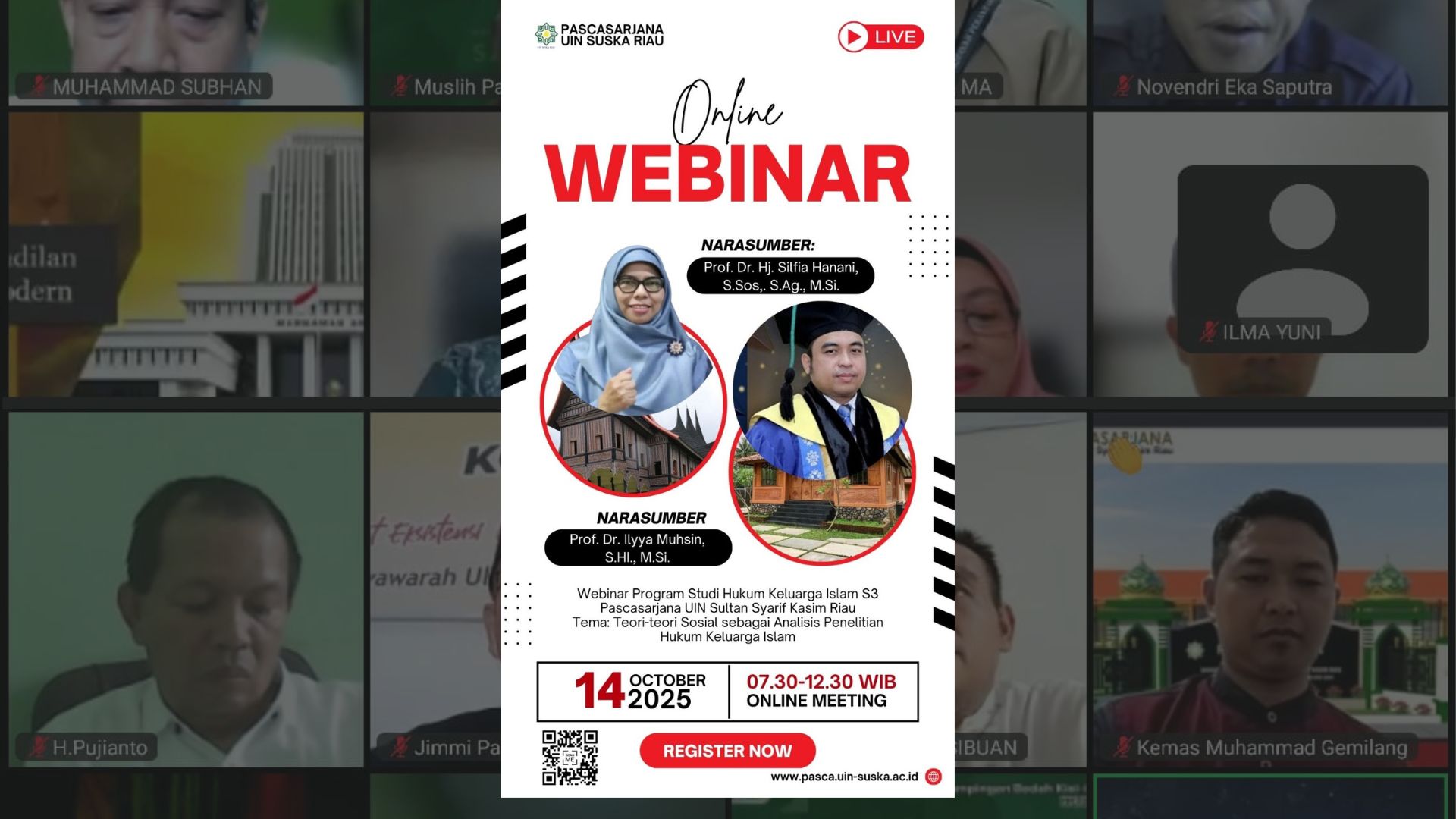 Salatiga, (14/10/2025)- Dekan Fakultas Syariah UIN Salatiga, Prof. Dr. Ilyya Muhsin, S.H.I., M.S.I berkesempatan mengisi webinar yang diselenggarakan Prodi Hukum Keluarga Islam S3 UIN Sultan Syarif Kasim Riau bertema “Teori-teori Sosial sebagai Analisis Penelitian Hukum Keluarga Islam.” Webinar ini dilaksanakan pada Selasa, Read More