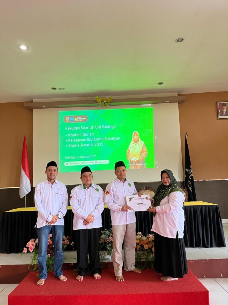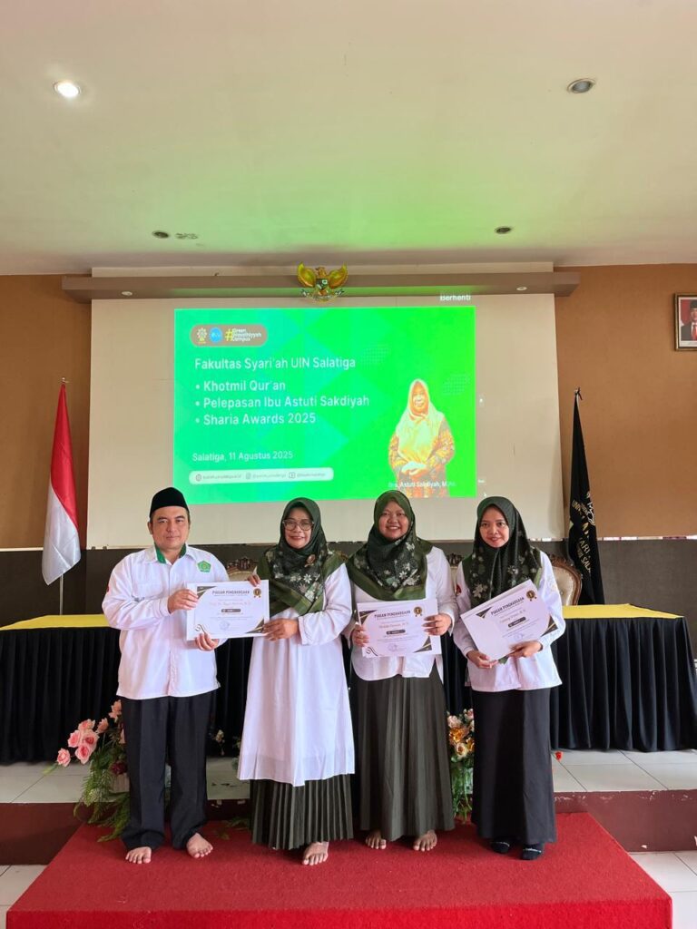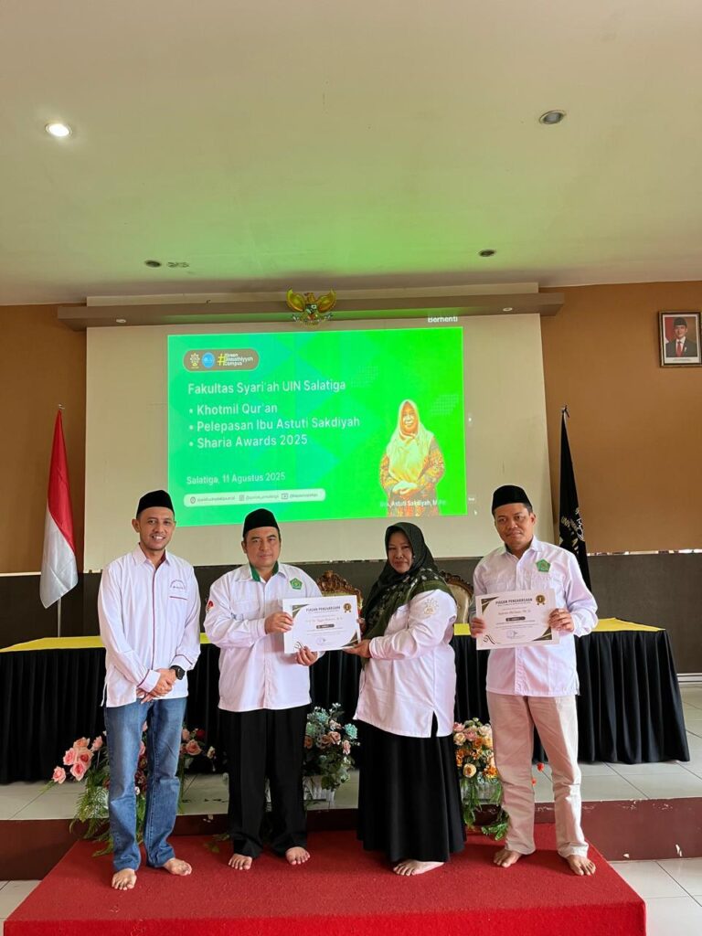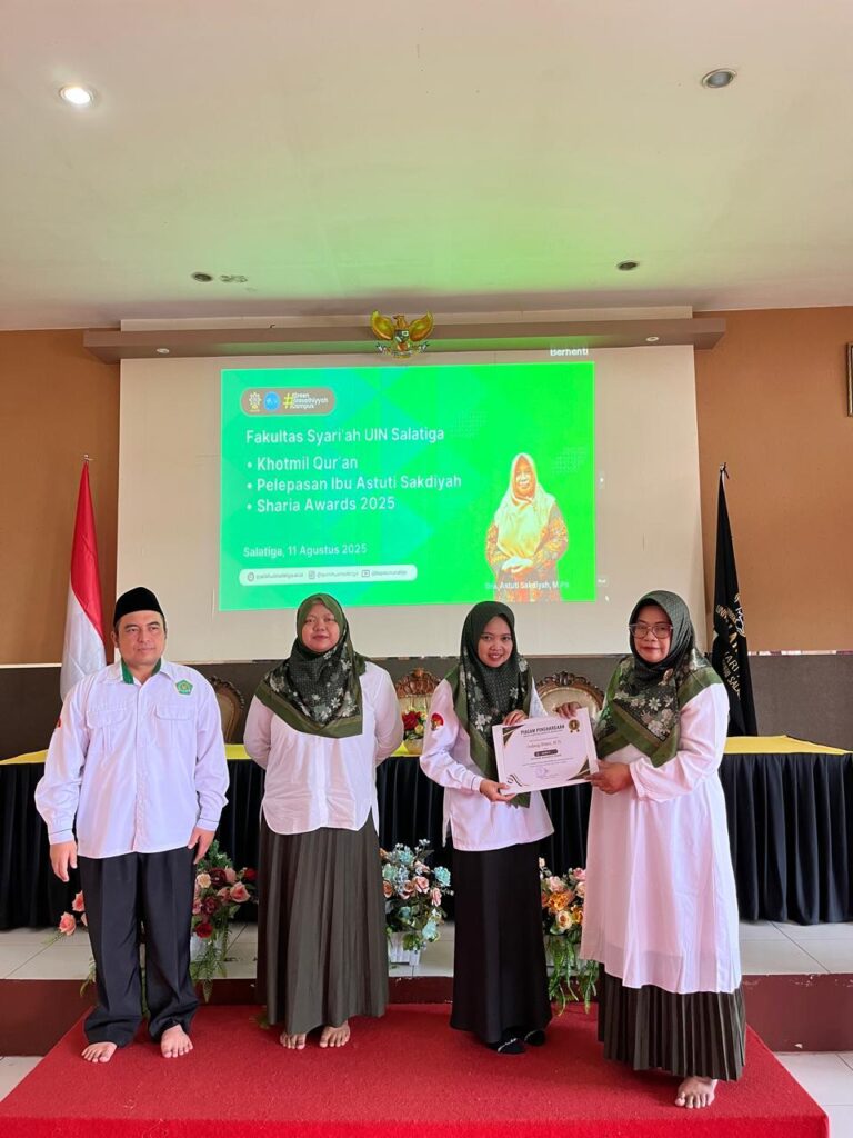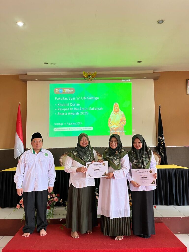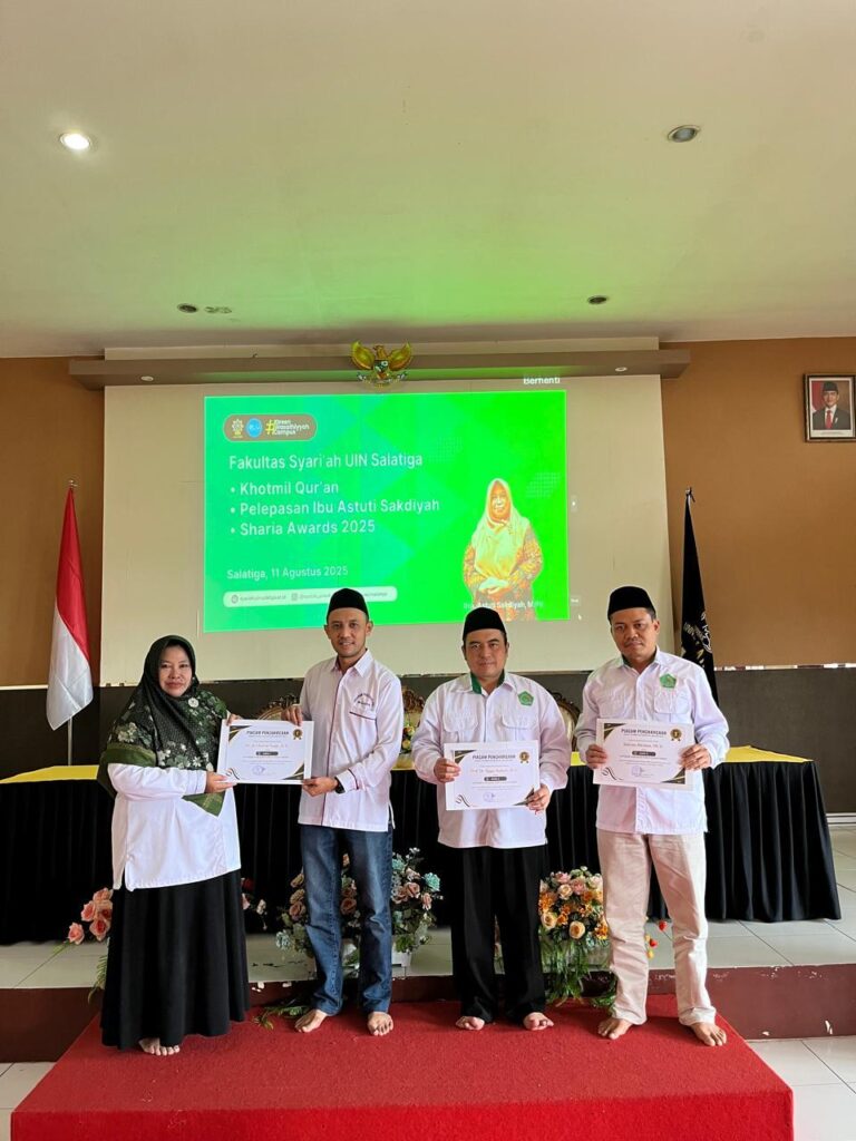 Salatiga, (11/08/2025)- Fakultas Syariah menggelar Shariah Awards 2025, sebuah ajang apresiasi bagi dosen dan mahasiswa berprestasi yang aktif dalam kegiatan akademik maupun nonakademik. Acara ini berlangsung di Aula Lantai 3 Gedung Dekanat Fakultas Syariah, bertepatan dengan prosesi pelepasan purna tugas Ibu Dra. Astuti Sakdiah, M.Pd.