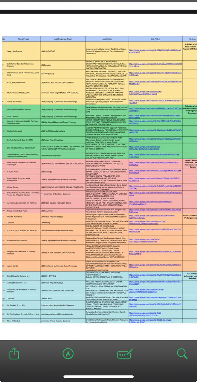 Dalam kegiatan yang diselenggarakan tersebut, presenter dari UIN Salatiga memberikan paparan atas hasil penelitian dengan melibatkan berbagai isu-isu aktual yang berkaitan dengan perspektif kajian hukum tata negara. Upaya yang dilakukan oleh mahasiswa tersebut guna menunjukkan bentuk sinergi yang kuat dalam upaya memajukan penelitian dan pengembangan ilmu hukum, khususnya di bidang hukum tata negara.