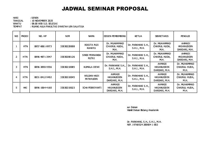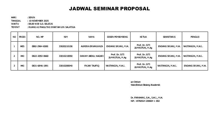 Berikut ini kami sampaikan Jadwal Sidang Seminar Proposal Fakultas Syari’ah: