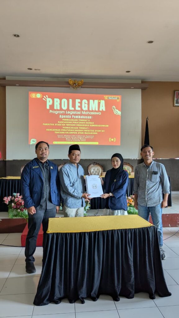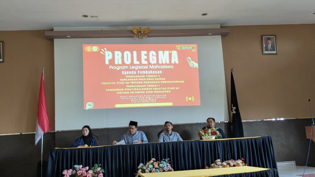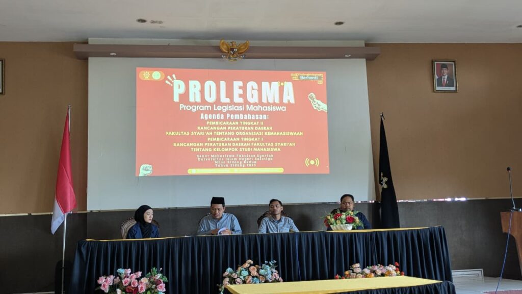 Salatiga, (30/10/2025)- Melanjutkan Program Legislasi Mahasiswa (Prolegma) Pembicaraan Tingkat I membahas Rancangan Peraturan Daerah (Raperda) Fakultas Syariah UIN Salatiga tentang Organisasi Kemahasiswaan yang dilaksanakan tanggal 08 Mei 2025, Senat Mahasiswa (SEMA) Fakultas Syariah mengadakan Prolegma kembali pada tanggal 30 Oktober 2025. Agenda Pembahasan Prolegma terkait Pembicaraan Tingkat II Raperda Fakultas Syariah tentang Organisasi Kemahasiswaan dan Pembicaraan Tingkat I Raperda Fakultas Syariah tentang Kelompok Studi Mahasiswa.