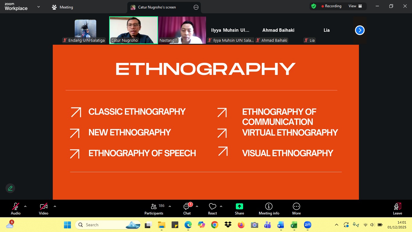 Salatiga, (01 Desember 2025)- Fakultas Syariah Universitas Islam Negeri (UIN) Salatiga menyelenggarakan kuliah tamu bersama Telkom University Purwokerto. Acara yang mengusung tema “Research Methodology for Articles Journal in The Society 5.0 Era” tersebut berlangsung secara daring melalui Zoom meeting dan disambut antusias oleh peserta.